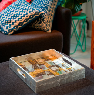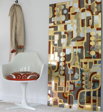 Carla creates luxurious gilded art following a love of colour and the handmade, embracing the beauty of imperfection. Carla utilizes traditional gilding techniques of Verre Églomisé married with an experimental modern approach. She draws inspiration from her reverence of form in nature to create contemporary and dynamic mirrored works.